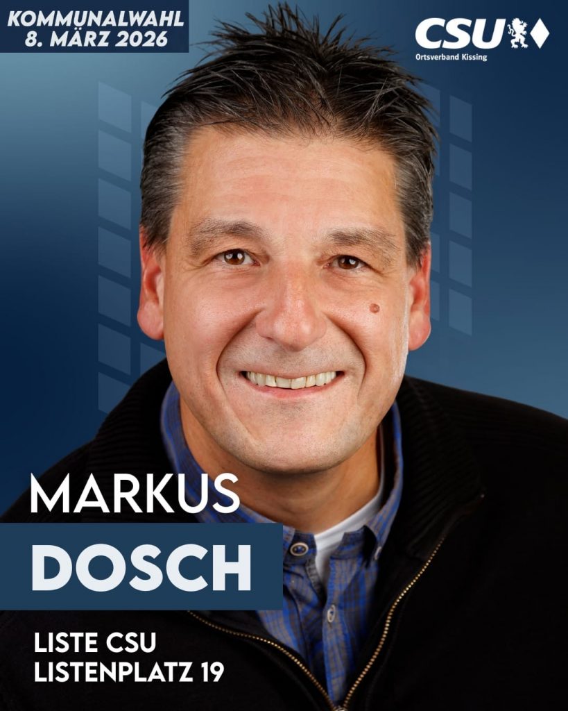 Einstimmig haben die CSU-Mitglieder ihre 24 Kandidatinnen und Kandidaten am 24.11.2025 nominiert und das mit einem klaren Ziel, „Weiter mit uns für Kissing“. Der Ortsvorsitzende und Bürgermeister Reinhard Gürtner, der die Liste anführt, ist stolz auf die zur Wahl stehenden Personen unterschiedlicher Berufs- und Altersgruppen. „Viele engagieren sich in Vereinen, arbeiten auch teils in deren Vorständen aktiv mit. So entsteht ein Spiegelbild Kissings, mitten aus dem Leben.“ so Gürtner. Fraktionssprecher Michael Eder, Listenplatz zwei, moderierte die Bewerbervorstellung. Wir haben teils stürmische und ereignisreiche Zeiten hinter uns, die uns forderten, haben jedoch die Aufgaben sehr gut gemeistert“, so der Fraktionssprecher. In einer Klausur haben wir gemeinsam unter den Hauptthemenpunkten „Familie und Leben“, „Infrastruktur“, „Kissing schützen“ sowie „Wirtschaft, Handel und Arbeit“ ein realistisches Wahlprogramm erarbeitet, das am Sonntag, 11. Januar im Rahmen des Neujahrsempfangs präsentiert wird.